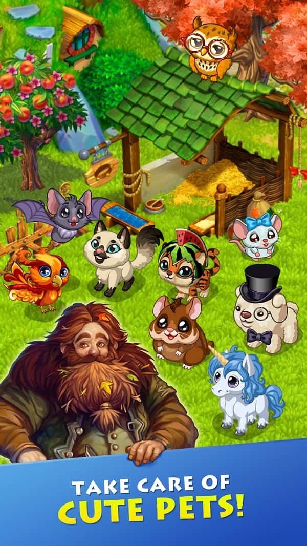 At first sight, you will be fascinated by the beauty of Farmdale. Lush green environments, colourful flowers, and trees are represented with bright graphics. Your plants have a unique colour and shape and can magically grow. They will turn into valuable foods. The areas on the farm are meticulously and flexibly designed. You can build many types of agricultural facilities. Examples include cattle farms, crops, and food processing plants. In particular, the game allows you to construct magical works, such as magicians and magic shops. They will help you increase the strength and capabilities of your farm. The game’s characters include adorable villagers and agricultural gods. They will always provide you with tasks and support in developing the farm. Each character has its personality and story. All create a lively community.