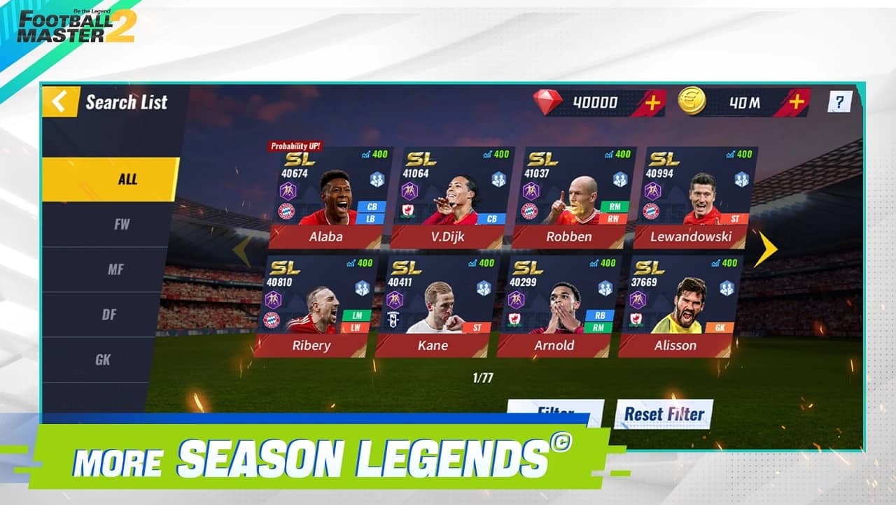 Football Master 2 offers a diverse player system. You are featuring thousands of real soccer stars from all over the world. You will meet famous players, promising young talents and other outstanding stars. Depending on your playstyle and tactics, you can focus on recruiting the best players for your team. There are many ways to recruit good players. You can participate in the transfer market to buy and sell players with other players. Participate in special events for limited player rewards. Or even take advantage of gift packages and daily events to receive quality players. Players also need to train and upgrade players to develop into true stars. Take the time to practice, improve the skills and fitness of the players. Each player will have separate parameters, including strength, speed, technique and many other factors. You need to consider and compare carefully to maximize your advantages.