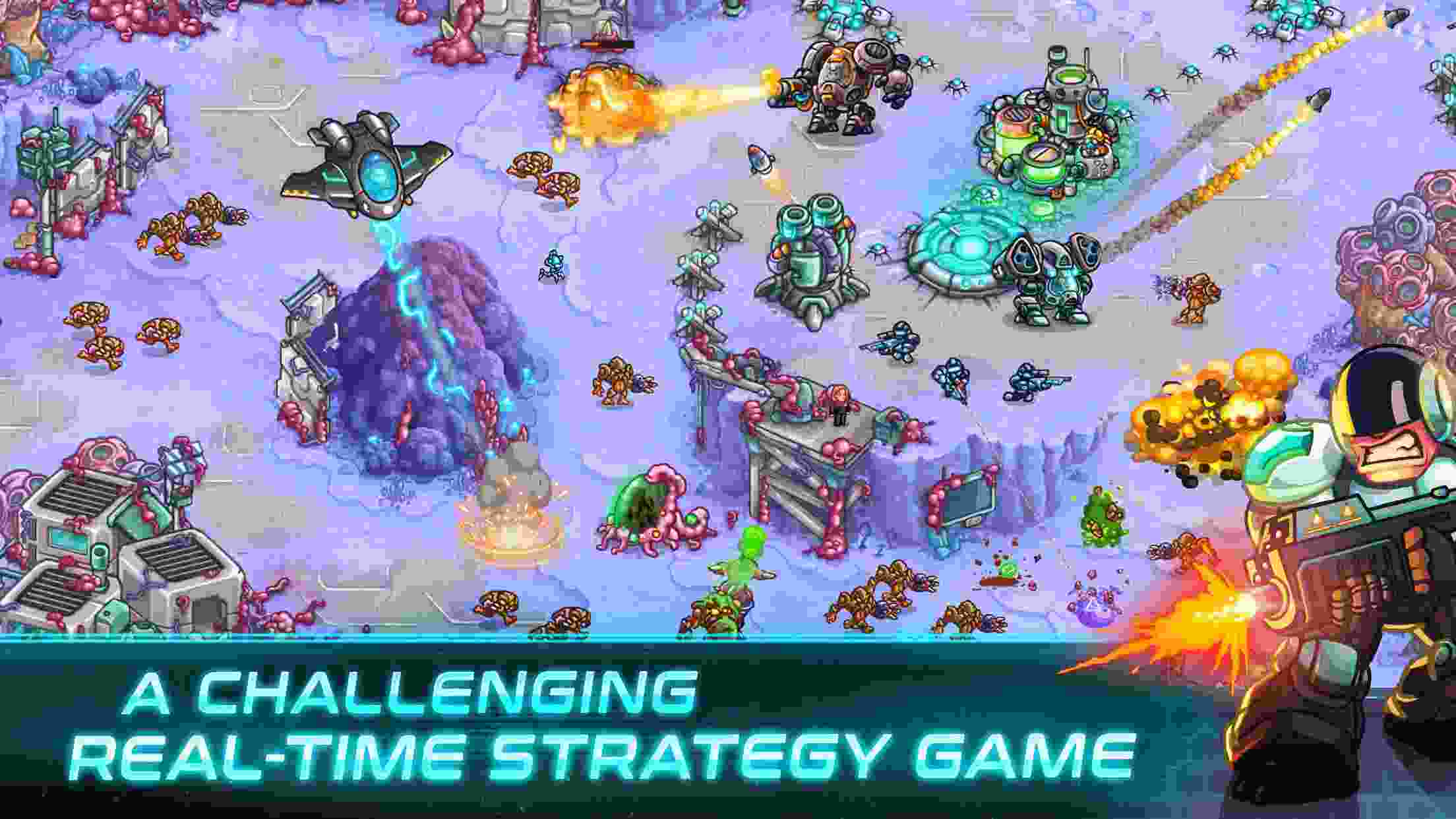 Iron Marines delivers dramatic battles. Along with that, it opens a future world full of creativity. These battles occur on different planets. Players face a variety of enemies. The combat environment in sci-fi battles is exciting. Players can hit on different planets. Rich maps offer a variety of strategic opportunities and approaches for players. In battle, players need to manage their troops intelligently. They can choose from a variety of combat units. Each unit has its abilities and is suitable for different situations. Players need to create appropriate tactics depending on the enemy type and environment. For example, using a defensive wall, attacking the enemy’s weak points. In addition, players can also use special skills. It can be comprehensive area damage, heal units, increase speed, or create different effects to help the player win.