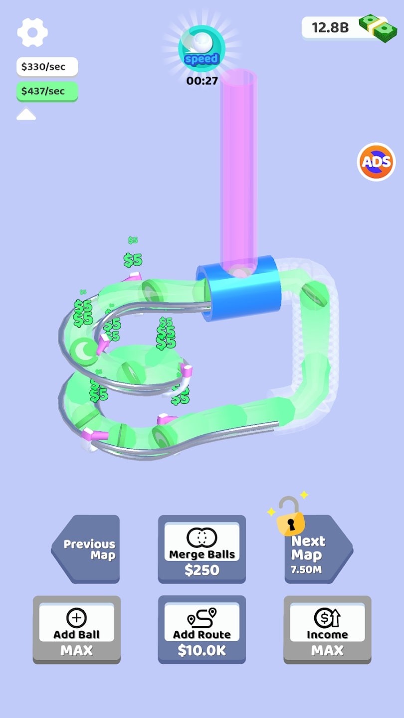 Players can earn money by completing different levels in the game. Each level comes with its challenges and objectives. Completing them will reward players with attractive prizes. Players can also earn money by achieving high scores in the levels. The high score is based on the number of balls that successfully move along the machine’s pipes. The more successful moves you make, the higher your score and the more money you earn. Additionally, players can watch advertisements to boost their gameplay progress. This is also an indirect way to improve gameplay performance.