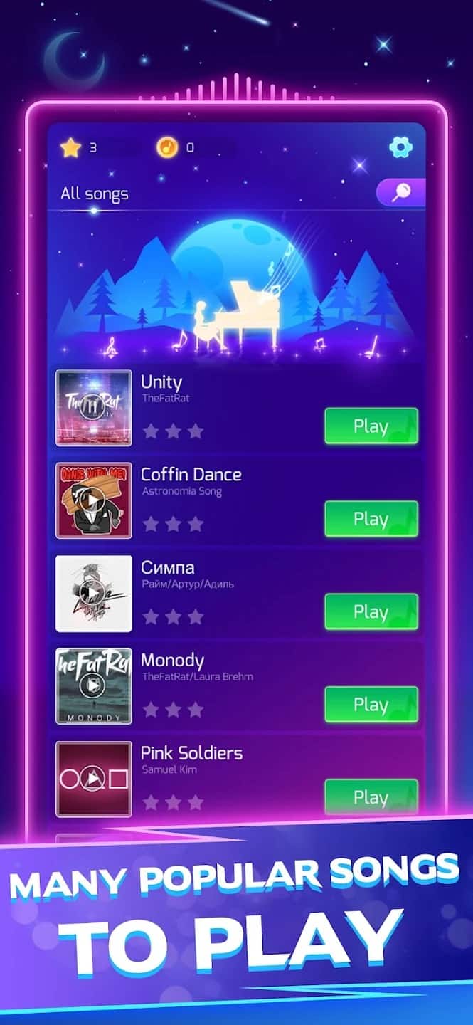 Piano Star is a great music game that gives players a unique and enjoyable musical experience with an intuitive interface and a diverse design of game modes. This game is a fun way to show off your musical talent and a creative space to create unique music. Explore your extraordinary musical and creative abilities with MODLMH in the world of Piano Star.