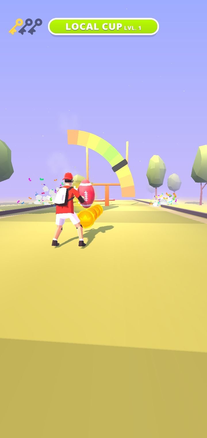 These are other players, professional and not easy to overcome. They will try to block you by placing their players in tactical positions to prevent you from moving forward. Pillars are fixed obstacles on the soccer field, and you must avoid them when moving the ball across the area. Hitting the posts can cause you to lose control and fail to reach a touchdown. At higher levels, you will encounter many moving obstacles, such as cars, trucks, or any other objects that may appear in the middle of your path. This poses a significant challenge as you need good timing to avoid them and not get hit. In some cases, you will encounter dynamic opponents, such as helicopters dropping water balloons onto the field or other threats from the sky. This requires you to have quick reflexes to avoid being attacked.