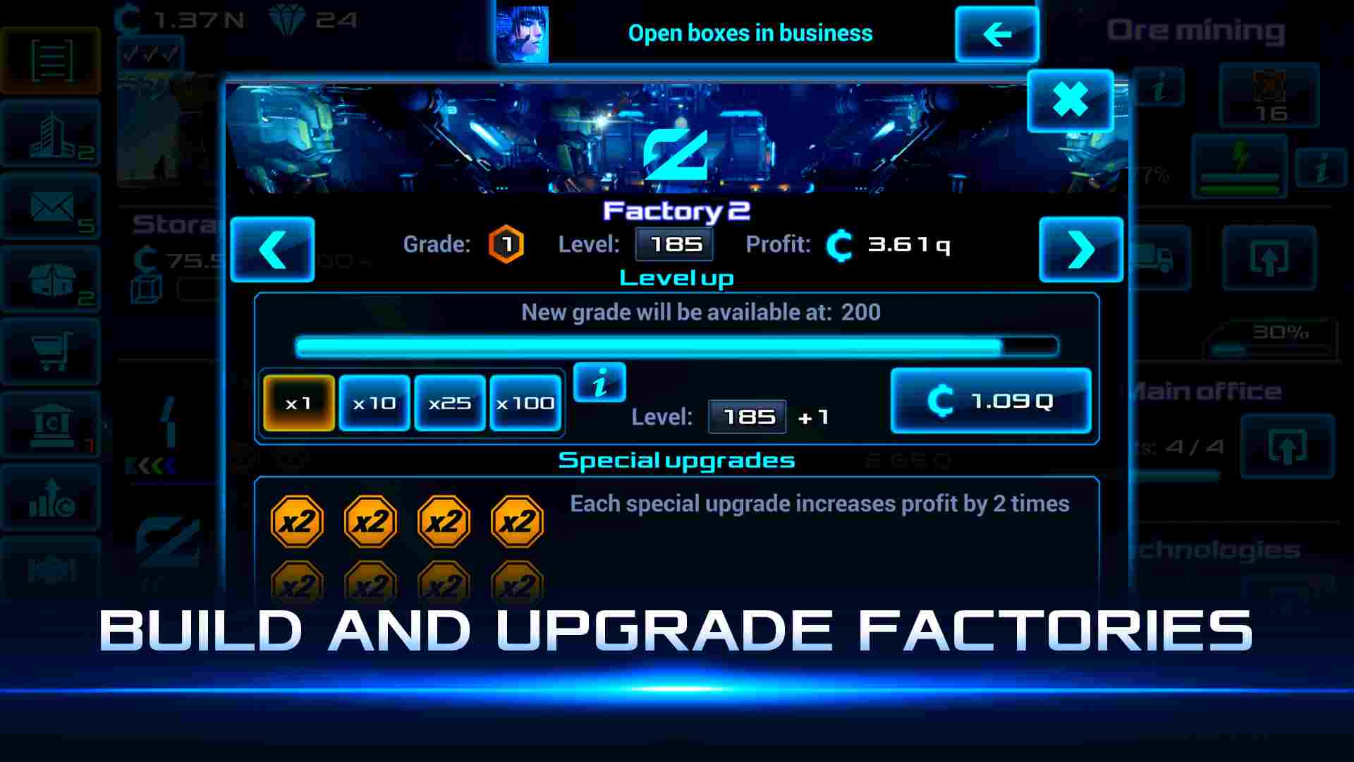 Nâng cấp không giới hạn trong Idle Space Business Tycoon 2.1.78