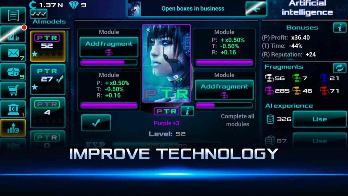Với Idle Space Business Tycoon bạn sẽ có cơ hội tiến xa hơn trong sự phát triển của thành phố. Điều này có được bằng cách đầu tư vào nghiên cứu các công nghệ tiên tiến. Việc nghiên cứu công nghệ sẽ mở ra những cơ hội mới để cải thiện hiệu suất sản xuất và tăng lợi nhuận. Cùng với đó còn giúp bạn khám phá và thực hiện những dự án đầy tiềm năng. Bạn có thể nghiên cứu các lĩnh vực như năng lượng tái tạo, khai thác tài nguyên không gian, công nghệ sản xuất tiên tiến, và nhiều khía cạnh khác. Chúng sẽ góp phần thúc đẩy sự phát triển kinh doanh bền vững của bạn. Với mỗi bước tiến trong nghiên cứu, bạn sẽ đắm chìm vào một thế giới đầy khám phá và cơ hội mới. Quá trình nghiên cứu đòi hỏi chiến lược của mỗi người. . Sự cân nhắc và quản lý thông minh trong việc nghiên cứu công nghệ sẽ giúp bạn đạt được sự thịnh vượng tối đa. Từ đó trở thành một nhà quản lý thành công trong không gian rộng lớn của game.