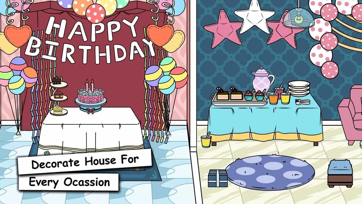 Trong Tizi Town: My Princess Games MOD APK 5.5 các đồ vật để trang trí phòng là một phần thiết yếu. Hệ thống này trong trò chơi rất đa dạng. Người chơi có vô số các lựa chọn khác nhau để hoàn thành thử thách thiết kế. Từ những chiếc giường với chất liệu và màu sắc phong phú. Hay các bức tranh và gương mang đến vẻ đẹp và sự lãng mạn cho không gian sống. Ngoài ra, bạn còn có thể chọn lựa các đèn, bàn trang điểm, ghế và sofa thoải mái và rất nhiều phụ kiện khác nữa. Không chỉ có đồ nội thất, bạn còn có cơ hội tấn đồ trang trí. Từ những đèn trang trí lung linh, các loại hoa và cây cảnh đa dạng cho đến thảm trải sàn tinh tế. Tất cả đều phục vụ tối đa cho sự sáng tạo của người chơi.